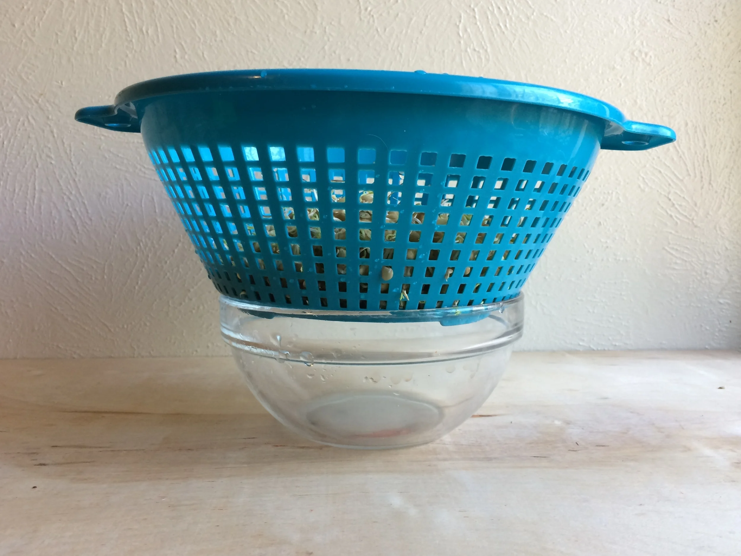 - Place the drained lentils in a plastic or enamel colander (not metal) and put the colander on top of a bowl or plate to catch any left over water. You can also cover a bowl with cheese cloth or thin cotton and secure it with a rubber band, then place the lentils on top of the cloth.