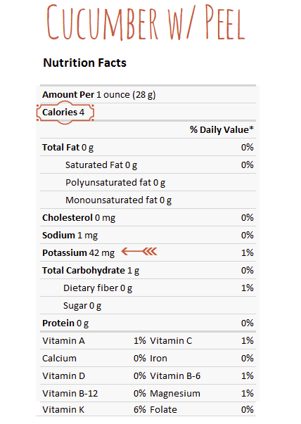 Surprising, right? They’re about equal in calories, but the vitamins and minerals are seriously lacking in cucumbers!
