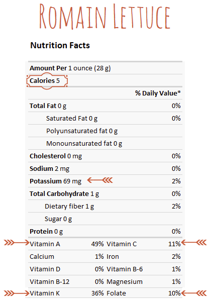 Check out this side by side comparison. Each data sheet is for 1 gram. You’d be eating a bit more than that in a salad, but it’s a great way to compare the inherent nutrition when the quantity is the same.