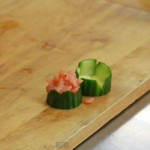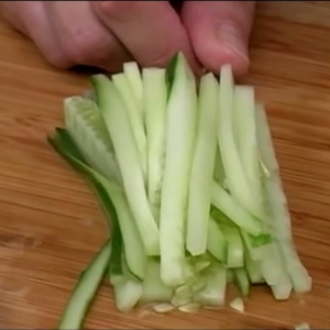 Julienne a cucumber to create symmetrical match sticks. Watch the video here.