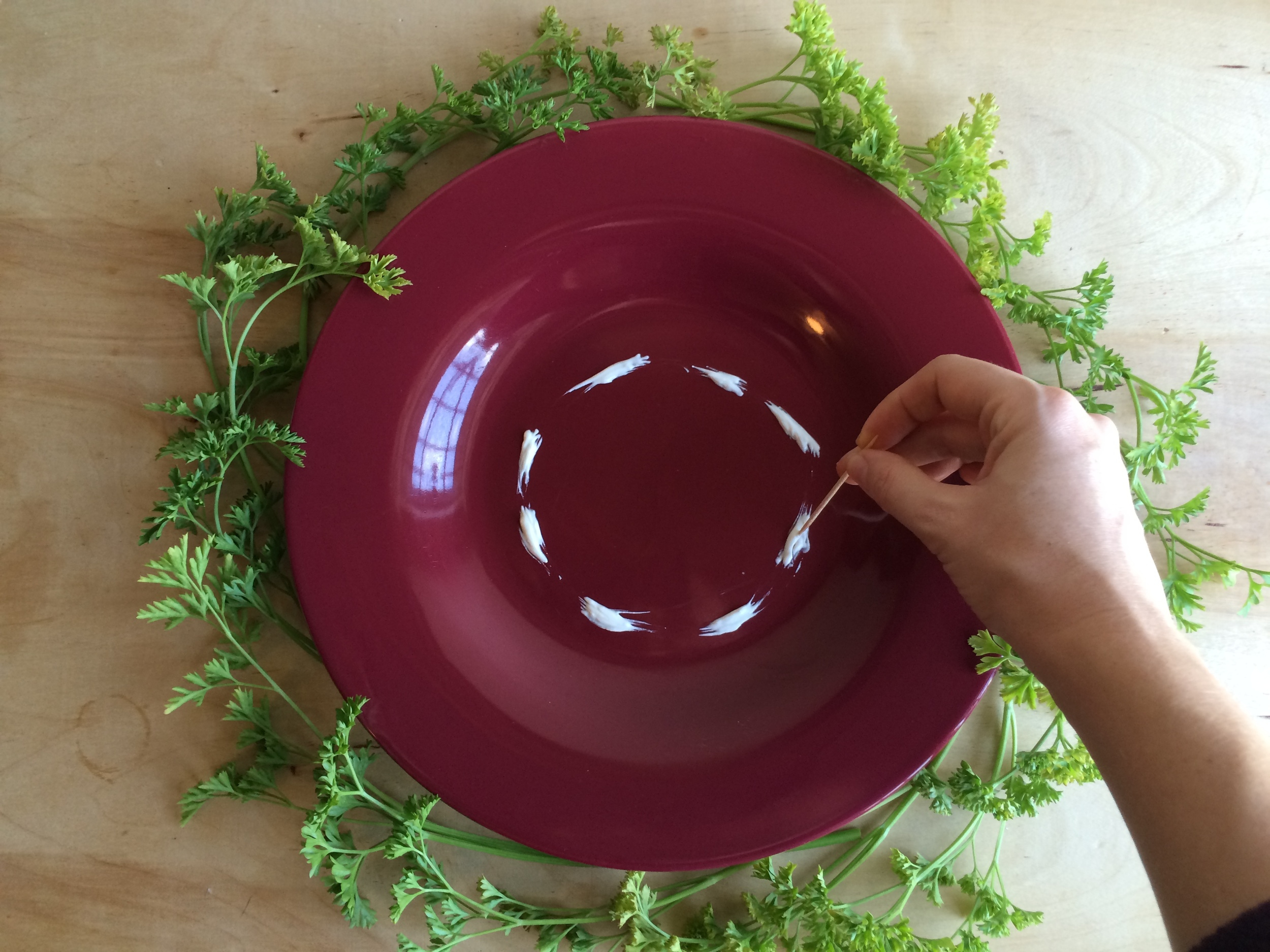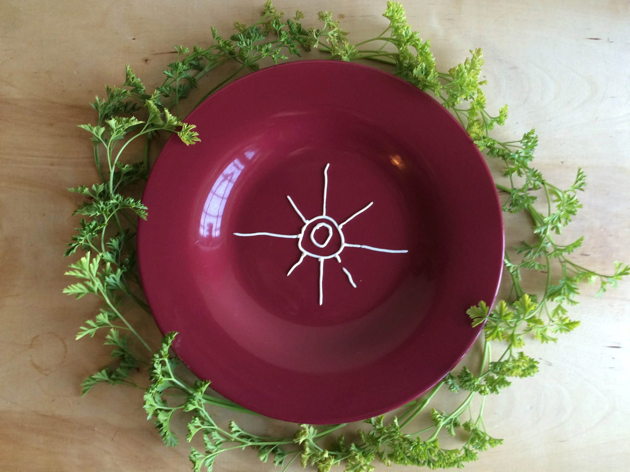 Start with two circles in the center of the plate. Play around with how large and how far apart each circle is.